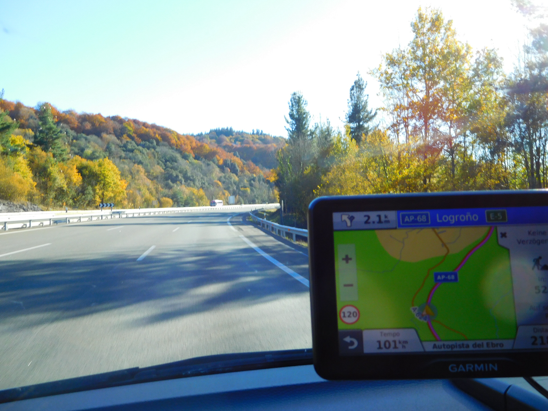 Wir haben gut zwei Drittel der Strecke hinter uns gebracht und wollen es jetzt etwas ruhiger angehen. Irgendwo zwischen Burgos und Valladolid sollten wir am Abend sein. Rund 300 bis 400 Kilometer wären das. Je nachdem welche Route wir wählen.