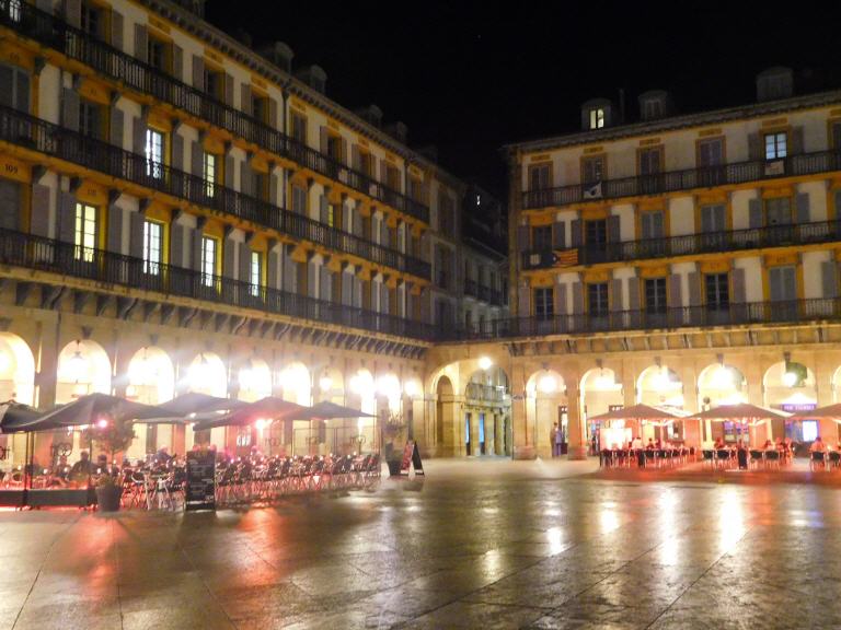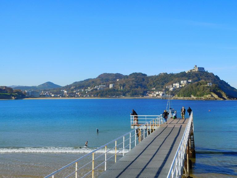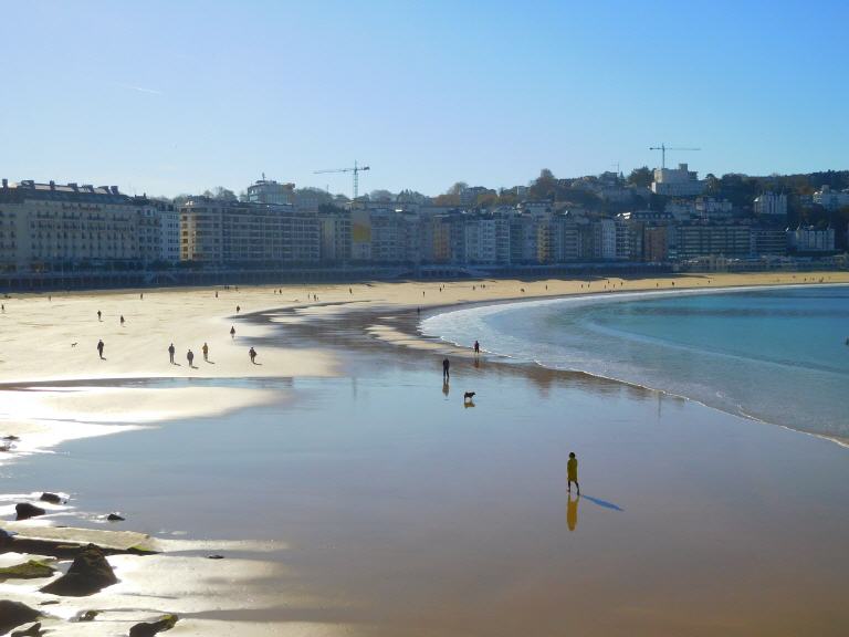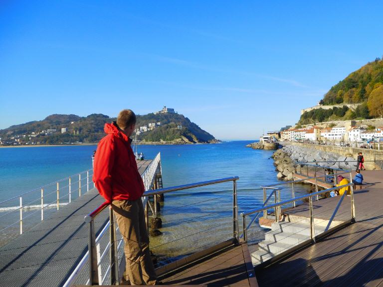 Bevor es zurück auf die Autopista geht, erlauben wir uns noch einen Ausflug bei Tageslicht nach San Sebastian. Mit dem T5 erweist sich die Parkplatzsuche als Geduldsspiel. Nicht nur für uns, sondern auch andere Autofahrer. Nämlich dann, wenn wir erst auf der Tiefgaragenzufahrt feststellen müssen, dass die Fahrzeughöhe auf 1,90 Meter begrenzt ist. Für unsere 1,95 Meter reicht das nicht. Rückwärtssetzen ist in diesem Fall angesagt. Nach langem Suchen finden wir in einer Neben-Nebenstraße eine winzigkleine Parklücke. Zu Fuß geht es über den Strand der östlichen Bucht zum Kursaal, weiter über die Urumea-Brücke und die Altstadt bis zum Hafen. Am Fuß der Jesus-Statue von Donostia drehen wir um. Am Santana, einer kleinen Tapasbar, in der "Erregina Erregeordea kalea" führt der Weg nicht ohne vorherige Einkehr vorbei. Dort werden Tapas bereits zum Frühstück serviert und am späten Vormittag erscheint uns ein zweites Frühstück durchaus angebracht.