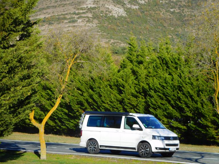 Wir erreichen das Baskenland. Eine Mischung aus Gebirge und Meeresstrand. Faszinierend. Während ich die Landschaft genieße, folgt Sebastian den Anweisungen des Navis und irgendwie sind wir dann mittendrin: Im verkehrstechnisch herausfordernden San Sebastian. Aber die Stadt, die ihren Namen mit Sebastian gemein hat, scheint es ihm anzutun. Souverän steuert er den T5 durch das innerstädtische Gewühl und wieder hinaus in die Berge bis zum Campingplatz Igueldo am Rande der Stadt.
