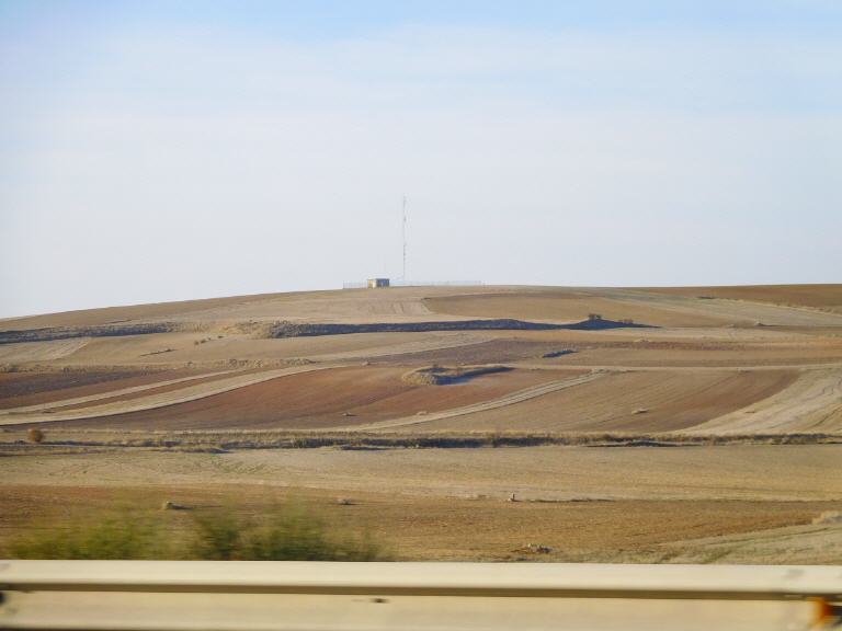 Der Landschaftswechsel, der sich nach der Passage der Gebirgspässe ergibt ist vollkommen krass und beeindruckt uns sehr - aber eher negativ. Auf rund 900 Meter über Meereshöhe erstrecken sich bis zum Horiziont ausgeräumte Ackerlandschaften. Jetzt im Herbst domieren gelb-bräunliche Farbtöne das Landschaftsbild. Nur selten "stören" grüne Baumgruppen oder Dörfer den Wüsteneindruck. Zumal die Sonne vom blauen und wolkenlosen Himmel aus vollen Rohren strahlt. Das Außenthermometer des T5 steigt jedoch nur knapp auf mehr als 10° Grad Celsius.